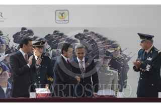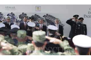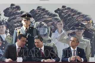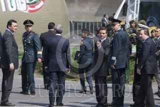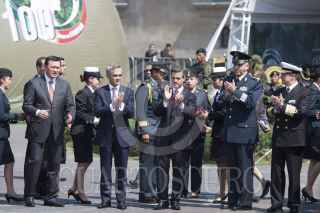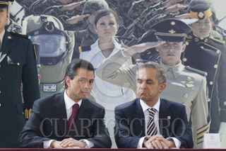 MÉXICO, D.F., 15FEBRERO2013.- Miguel Ángel Mancera, Jefe de Gobierno, Enrique Peña Nieto, Presidente de México, Salvador Cienfuego, secretario de la Defensa, y Vidal Soberón, secretario de Marina, recorrieron la exposición militar "Fuerzas Armadas...Pasión por servir a México", que se encuentra instalada en la plancha del Zócalo. FOTO: MOISÉS PABLO /CUARTOSCURO.COM