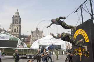 MÉXICO, D.F., 15FEBRERO2013.- Se inauguró la exposición militar "Fuerzas Armadas...Pasión por servir a México" en la plancha del Zócalo. En la cual se exhiben helicópteros de la Marina y Fuerza Aérea, tanques, tanquetas, armas de uso exclusivo del ejercito, maniobras y tácticas de la fuerza especiales, y un avión de la fuerza aérea. FOTO: MOISÉS PABLO /CUARTOSCURO.COM