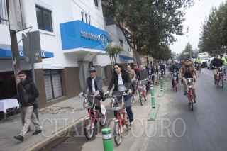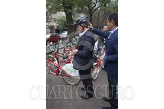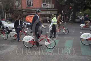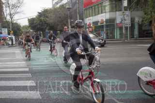 MÉXICO, D.F., 16FEBRERO2013.- El Jefe de Gobierno Miguel Ángel mancera realizó un recorrido en Ecobici, en el marco de la celebración del tercer aniversario de este sistema de transporte individual, el mandatario salió de la estación Ecobici, ubicada en las calles de Sonora y Durango, y se dirigió a Generla Primm en donde inauguró unas nuevas oficinas de Ecobici. En la imagen lo acompaña su secretario particular Luis Serna. FOTO: MOISÉS PABLO /CUARTOSCURO.COM