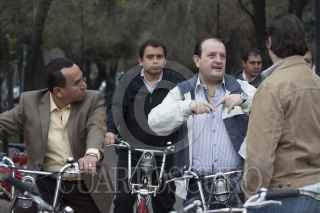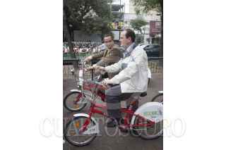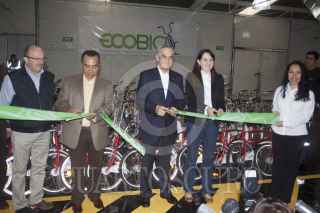 MÉXICO, D.F., 16FEBRERO2013.- Rufino León Tovar, secretario de Transporte y Vialidad, Miguel Ángel Mancera, Jefe de Gobierno, y Tanya Müller, secretaria del Medio Ambiente, cortaron el listón inaugural de la puesta en marcha de unas nuevas oficinas de Ecobici, en el marco de su tercer aniversario, esta sede se ubica en la calle de General Primm. FOTO: MOISÉS PABLO /CUARTOSCURO.COM