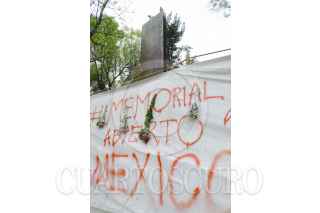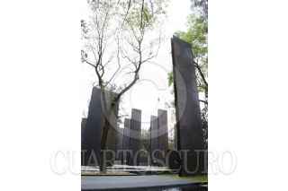 MÉXICO,D.F.,16FEBRERO2013.-Integrantes de la Asociación Creadores por la Paz en México y el arquitecto Julio Gaeta se manifestaron en el monumento ‘Memorial a las víctimas de la Violencia en México’, ubicado en Campo Marte; exigieron al Presidente Peña Nieto abra al público dicho monumento, ya que fue terminado desde noviembre pasado y no está cumpliendo su función de espacio recreativo ni de remembranza a los caídos por la denominada guerra contra el narcotráfico. FOTO: JOYCE GARCÍA /CUARTOSCURO.COM
