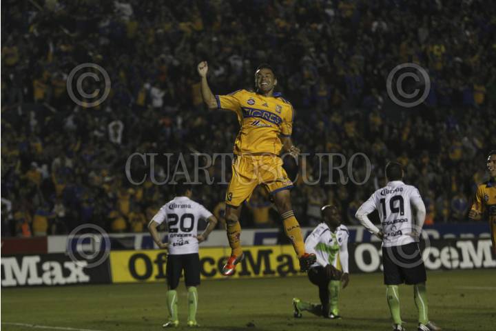 MONTERREY, NUEVO LEÓN, 16FEBRERO2013.- Los Tigres de la UANL se enfrentan a los Santos Laguna en el Estadio Tecnológico, al momento el marcador es 1-1, por los locales anotó el delantero Juninho, por la visita Darwin Quintero, en partido correspondiente a la jornada 7. FOTO: GABRIELA PÉREZ MONTIEL /CUARTOSCURO.COM