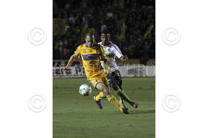 MONTERREY, NUEVO LEÓN, 16FEBRERO2013.- Los Tigres de la UANL se enfrentan a los Santos Laguna en el Estadio Tecnológico, al momento el marcador es 1-1, por los locales anotó el delantero Juninho, por la visita Darwin Quintero, en partido correspondiente a la jornada 7. FOTO: GABRIELA PÉREZ MONTIEL /CUARTOSCURO.COM