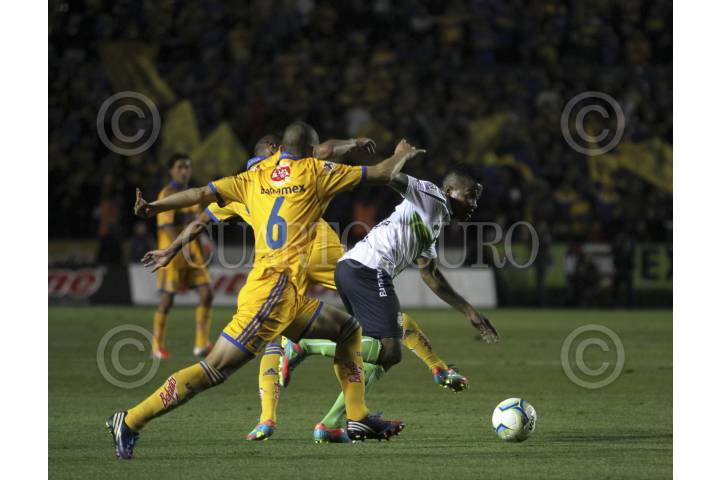 MONTERREY, NUEVO LEÓN, 16FEBRERO2013.- Los Tigres de la UANL se enfrentan a los Santos Laguna en el Estadio Tecnológico, al momento el marcador es 1-1, por los locales anotó el delantero Juninho, por la visita Darwin Quintero, en partido correspondiente a la jornada 7. FOTO: GABRIELA PÉREZ MONTIEL /CUARTOSCURO.COM