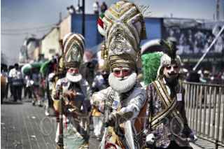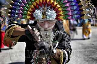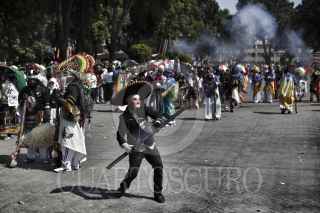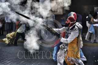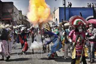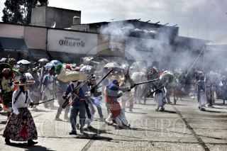 SAN PEDRO CHOLULA, PUEBLA, 17FEBRERO2013.- La tarde de este domingo se realizó el tradicional Carnaval de Cholula, en donde pobladores de la región realizan la danza de moros y cristianos, así como una representación de barrios mexicanos en contra de franceses, en donde los danzantes se enfrentan en una cruenta batalla con mosquetones llenos de pólvora. FOTO: FÉLIX MÁRQUEZ /CUARTOSCURO.COM