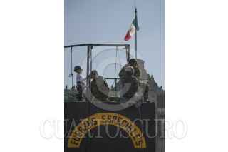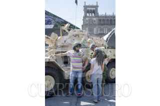 MÉXICO,D.F.,18FEBRERO2013.- Con motivo de los cien años del Ejército Mexicano,se inaguró el 15 de febrero una exposición en la plancha del Zócalo capitalino titulada "Fuerzas Armadas. Pasión por servir a México" donde acuden niños, jóvenes y adultos,para conocer el equipo con que cuenta esa institución. FOTO: SANDRA PÉREZ /CUARTOSCURO.COM