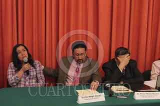MÉXICO, D.F., 19FEBRERO2013.- En conferencia de prensa convocada por CENCOS se dio a conocer la captura de los tres lideres de la secta internacional llamada "Defensores de Cristo", que operaba físicamente en territorio de Coahuila y Nuevo Laredo desde el 2010. Ignacio González de Arriba alias Maestro Fénix’, Shoukri Elmernessi alias "Tito" de origen español y Losanger José Arenas alias ‘Losito’, venezolano; son acusados de los presuntos delitos de tráfico de órganos, lavado de dinero, reducción de servidumbre, abuso sexual contra mujeres y menores, asociación delictiva, estafa, fraude y ejercicio ilegal de la medicina. En México el número de víctimas rebasa las 4 mil personas, pero se estima que los adeptos por internet son más de 10 mil, los cuales mandaban dinero desde sus países de origen. En la imagen Blanca Castro, Norma Ceja, víctimas de la secta, Héctor Walter, abogado y presidente de Red Apoyo a Víctimas, y Víctor Hugo Walter comisionado de RAVICS Inc. FOTO: SAÚL LÓPEZ /CUARTOSCURO.COM