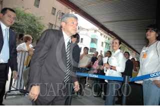 MEXICO, D.F . 17JULIO2005.- José Ramón, hijo del jefe de gobierno local, y Andrés Manuel López Obrador, jefe de gobierno, a su llegada al evento organizado por redes ciudadanas en las que el mandatario local dio a conocer 50 compromisos con los que inicia su campaña proselitista. FOTO: Iván Stephens/CUARTOSCURO.COM