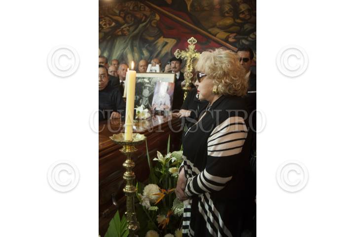 MÉXICO, D.F., 20FEBRERO2013.- Gabriel Cordero hijo del actor, Joaquín Cordero, aplauden al pie del féretro de su padre quien falleciera la tarde de ayer en su casa. El homenaje se llevó a cabo en el vestíbulo de el Teatro Jorge Negrete y se tiene previsto que mañana le realizaen un homenaje en el Palacio de la Bellas Artes. FOTO: FRANCISCO RODRÍGUEZ /CUARTOSCURO.COM