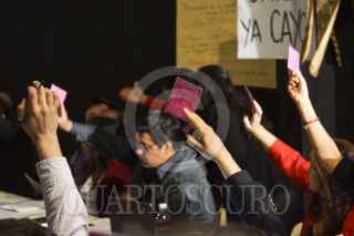 MÉXICO, D.F., 20FEBRERO2013.- En sesión extraordinaria del 3er Consejo Universitario de la Universidad Autónoma de la Ciudad de México (UACM), establecido y reconocido por la Asamblea Legislativa y el Gobierno del Distrito Federal, presentó el punto de acuerdo para la revocación de mandato de la C. Esther Orozco como rectora de la Universidad. La votación del punto se realizó en votación secreta por la importancia del resolutivo. FOTO: ADOLFO VALTIERRA /CUARTOSCURO.COM
