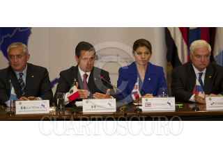 SAN JOSÉ, COSTA RICA, 20FEBRERO2013.- Otto Pérez Molina, Presidente de Guatemala, Enrique Peña Nieto, Presidente de México, Laura Chinchilla, Presidente de Guatemala, y Ricardo Martinelli, Presidente de Panama, durante su participación en la I Cumbre del Sistema de Integración Centroamericana (SICA)-México. FOTO: PRESIDENCIA /CUARTOSCURO.COM