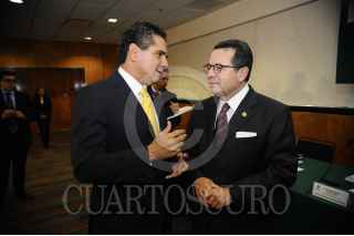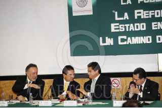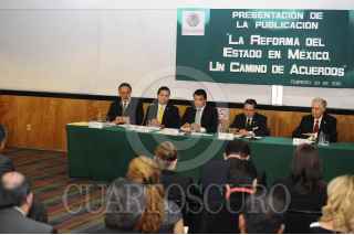 MÉXICO, D.F., 20FEBRERO2013.- José Alberto Aguilar, Silvano Aureoles Conejo, coordinador de los diputados federales del PRD, Mario López Valdez, gobernador de Sinaloa, y Francisco Arroyo Vieyra, presidenta de la mesa directiva de la Cámara de Diputados, durante la presentación del libro "La Reforma del Estado en México, Un camino de Acuerdos", en el Palacio Legislativo. FOTO: CUARTOSCURO.COM