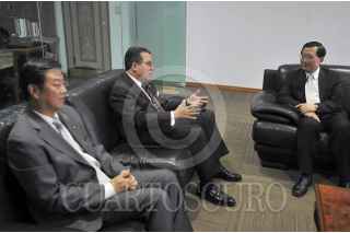 MÉXICO, D.F., 20FEBRERO2013.- Francisco Arroyo Vieyra, presidente de la Cámara de Diputados, recibió en su oficina a Qiang Wei, presidente de la Asamblea Popular Provincial de Qinghai, China. Atestiguó el embajador de ese país en México, Zeng Gang. FOTO: CUARTOSCURO.COM