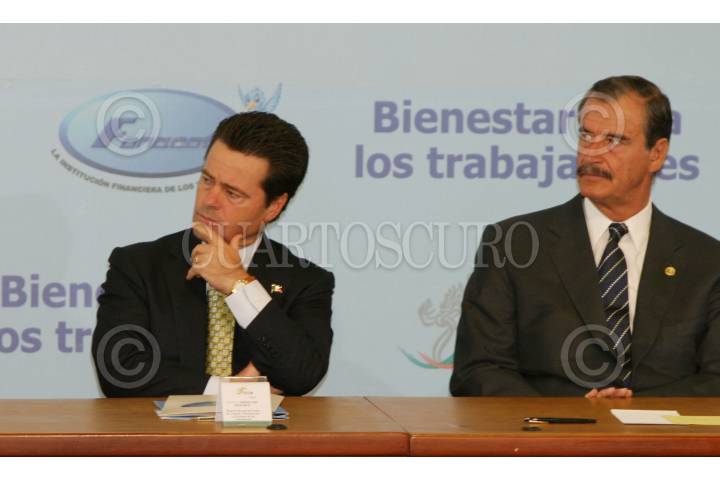 MEXICO, D.F. 18JULIO2005.- EL gobernador de Sonora Eduardo Bours, el presidente Vicente Fox y el secretario del trabajo Xavier Salazar Saenz durante la ceremonia Acciones de Fonacot que se llevó a cabo en la residencia oficial de Los Pinos FOTO: Miguel Dimayuga/CUARTOSCURO.COM