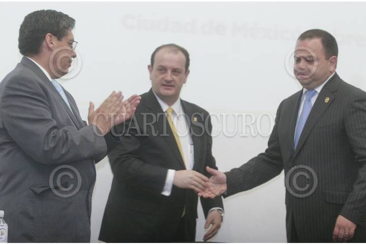 MÉXICO, D.F., 21FEBRERO2013.- Los titulares de la Secretaría de Seguridad Pública del D.F., Jesús Rodríguez Almeida, de la Procuraduría capitalina, Rodolfo Ríos Garza, y de Derechos Humanos del Distrito Federal, Luis González Placencia, entregaron diplomas a los participantes en un curso de Derechos Humanos impartido por aquella Comisión a elementos de ambas dependencias. FOTO: JUAN PABLO ZAMORA / CUARTOSCURO.COM