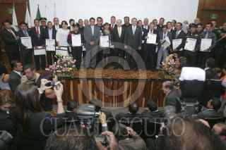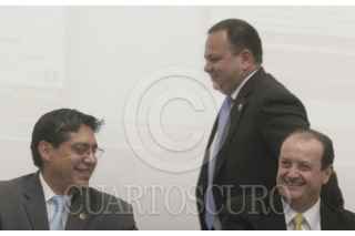MÉXICO, D.F., 21FEBRERO2013.- Los titulares de la Secretaría de Seguridad Pública del D.F., Jesús Rodríguez Almeida, de la Procuraduría capitalina, Rodolfo Ríos Garza, y de Derechos Humanos del Distrito Federal, Luis González Placencia, entregaron diplomas a los participantes en un curso de Derechos Humanos impartido por aquella Comisión a elementos de ambas dependencias. FOTO: JUAN PABLO ZAMORA / CUARTOSCURO.COM
