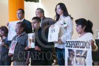 MÉXICO, D.F., 22FEBRERO2013.- Familiares de las personas desaparecidas que aparecen en el informe de Human Rights Watch, "Los desaparecidos de México: el persistente costo de una crisis", que documenta 249 casos de víctimas que no han sido localizadas y cuyos responsables no han sido presentados ante la justicia, durante la mesa de análisis para escuchar los testimonios acerca de la búsqueda de la justicia. FOTO: DIEGO SIMÓN SÁNCHEZ /CUARTOSCURO.COM