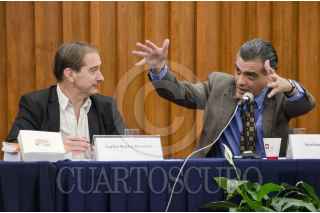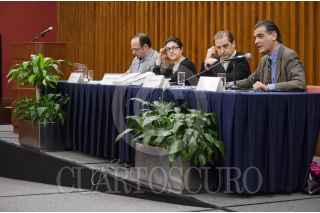 MÉXICO, D.F., 22FEBRERO2013.- Carlos Martín Beristain; Santiago Corcuera y Eloísa González Hidalgo; durante la presentación del libro "El Oasis de la Memoria", que consta de una memoria histórica y violaciones de Derechos Humanos en el Sáhara Occidental, el cual fue escrito por Carlos Martín Beristain y Eloísa González Hidalgo y que consiste en II Tomo. Ésto se llevó acabo en la Comisión de Derechos Humanos del Distrito Federal y con la presencia del Embajador de la República Árabe Saharaui Democratica en México Ahmed Mulay Ali Hamadi (en la imagen). FOTO: MISAEL VALTIERRA / CUARTOSCURO.COM