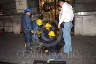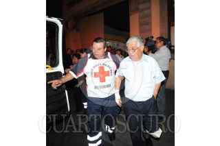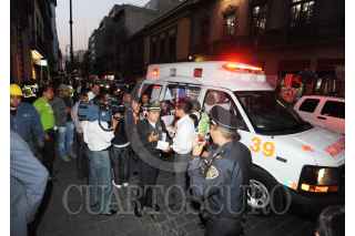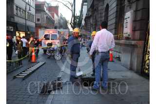 MÉXICO, D.F., 22FEBRERO2013.- Cinco personas resultan lesionadas tras la explosión de una mufa, ubicada en la calle 16 de Septiembre y Bolivar de la colonia Centro. Paramedico acudieron al lugar para atender a los lesionados mientras bomberos y personal técnico de la CFE revisaron los desperfectos que ocasionaron esta explosión. FOTO: LUIS CARBAYO /CUARTOSCURO.COM