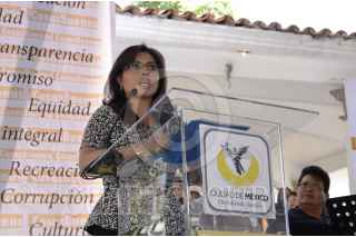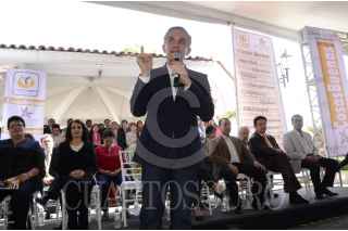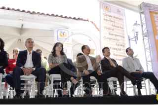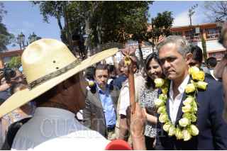 MÉXICO, D.F., 23FEBRERO2013.- Habitantes de la Magdalena Contreras le entregan un collar de rosas amarillas al Jefe del Gobierno Miguel Ángel Mancera en señal de reconocimiento a su persona. FOTOS: JOYCE GARCÍA /CUARTOSCURO.COM