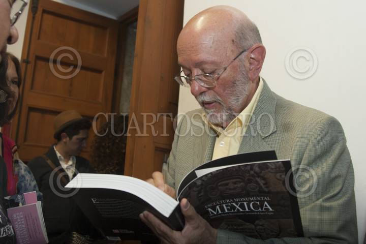 MÉXICO, D.F., 23FEBRERO2013.- El Dr. Eduardo Matos Moctezuma y Leonardo López Luján, presentaron en la XXXIV Feria Internacional del Libro del Palacio de MIneria el libro "Escultura Monumental Mexica" del cual son autores en compañia de los especialistas, José Rubén Romero y Teresa del Conde. FOTO: FRANCISCO RODRÍGUEZ /CUARTOSCURO.COM