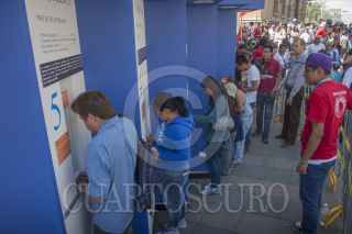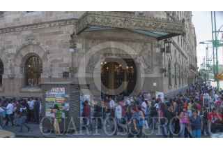 MÉXICO, D.F., 24FEBRERO2013.-Cientos de personas hacen fila en las calles de Tacuba y Eje Central, en el centro Histórico de la Ciudad, para accesar a la XXXIV Feria Internacional del Libro del Palacio de Mineria. FOTO: JUAN PABLO ZAMORA /CUARTOSCURO.COM