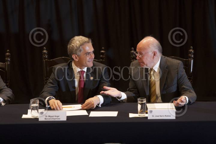 MÉXICO, D.F., 25FEBRERO2013.- El empresario Carlos Slim y José Narro Robles, rector de la UNAM, se toman la foto del recuerdo al finalizar la inaguración del Programa Cultural "Su sede en el Centro" en el Antiguo Colegio de San Idelfonso. FOTO: JUAN PABLO ZAMORA /CUARTOSCURO.COM