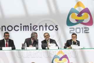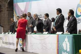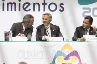 MÉXICO, D.F., 26FEBRERO2013.- Oscar Guerra Ford, Comisionado Ciudadano Presidente del Instituto de Acceso a la Información Pública del Distrito Federal, Miguel Ángel Mancera, Jefe de Gobierno, y Manuel Granados Covarrubias, presidente de la comisión de gobierno de la ALDF, en la ceremonia en la que se entregaron reconocimientos a las "Mejores Prácticas de Transparencia 2012 del InfoDF", en el patio central del Museo de la Secretaría de Hacienda y Crédito Público. FOTO: MOISÉS PABLO /CUARTOSCURO.COM