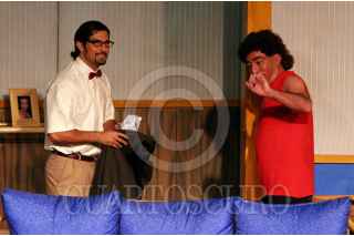 MEXICO DF 22JULIO2005.- Los actores Arlette Pacheco y Alberto Rojas "El Caballo" en uno de los número de la obra "No me toquen eso". La obra marca el debut teatral del regiomontano Arturo Carmona, ex esposo de Alicia Villareal. FOTO: Miguel Dimayuga/CUARTOSCURO.COM