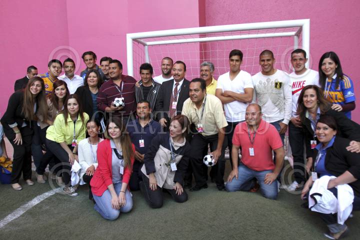 MONTERREY, NUEVO LEÓN, 26FEBRERO2013.- Emmanuel "Tito" Villa, y Ricardo "Tuca" Ferreti, director técnico de la UANL, regalaron firmas de autógrafos y fotos a sus seguidores en el Museo de Arte Contemporáneo. El equipo actualmente se encuentra en primer lugar de la tabla general del torneo de la Liga Mx. FOTO: GABRIELA PÉREZ MONTIEL/CUARTOSCURO.COM