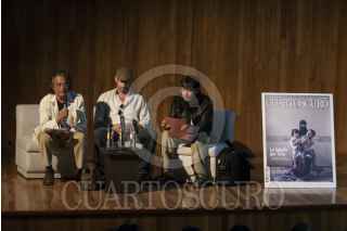 MÉXICO, D.F., 26FEBRERO2013.- Pedro Valtierra, director y fundador de la Agencia y Editorial Cuartoscuro; Javier Manzano y Narciso Contreras, fotoperiodistas mexicanos; presentaron en el auditorio del Centro Cultural Tlatelolco de la UNAM, el número 118 de la Revista Cuartoscuro, en el cual presentan parte de su trabajo como fotógrafos de guerra en Siria. FOTO: ADOLFO VALTIERRA /CUARTOSCURO.COM