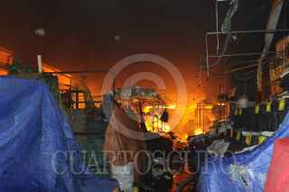MÉXICO, D.F., 27FEBRERO2013.- Fuerte incendio consumió dos naves del mercado de La Merced, del que se desconocen las causas. Bomberos de todo el Distrito Federal acudieron en apoyo para sofocar esta conflagración que duro mas de 5 horas en ser controlado. FOTO: LUIS CARBAYO /CUARTOSCURO.COM