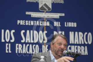 CUERNAVACA, MORELOS, 27FEBRERO2012. - Jorge Castañeda, Miguel Albarrán Sánchez y Rubén Aguilar Valenzuela, presentaron hoy en el auditorio Emiliano Zapata de la Universidad Autónoma de Morelos, el libro: Los saldos del narco; el fracaso de la guerra. En lo particular en entrevista posterior, Jorge Castañeda declaró su escepticismo ante el éxito de la propuesta del mando único, y respecto al caso Elba Esther Gordillo, señaló que hay más casos de corrupción a los que se deberían atender. FOTO: ALMA LAFAYET /CUARTOSCURO.COM