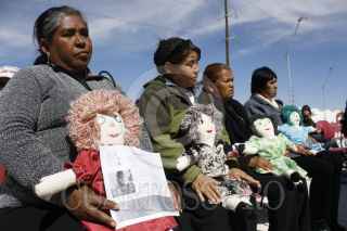 CIUDAD JUÁREZ, CHIHUAHUA, 27FEBRERO2013.- Madres de mujeres desaparecidas se reunieron en el Campo Algodonero para recordar que hace 20 años iniciaron los homicidios en contra de mujeres en ciudad Juárez. Vicky Caraveo encabezó el evento ‘20 años de lágrimas’ con el grupo de Madres en ‘Busca de Justicia’. Se dio a conocer que dentro de tres semanas se lanzará página de internet en la cual presentarán datos oficiales de mujeres que desaparecieron desde 1993. En el evento se presentó a las muñecas que realizan ellas mismas en honor a sus hijas, también presentaron la manta que realizaron entre todas las mujeres con fotografías de sus hijas. Se destacó en el evento que tras varios años de que comenzaron las desapariciones de mujeres, no se tiene respuesta a los casos y quedan impunes a pesar de demostrar quienes son los culpables. FOTO: NACHO RUÍZ /CUARTOSCURO.COM