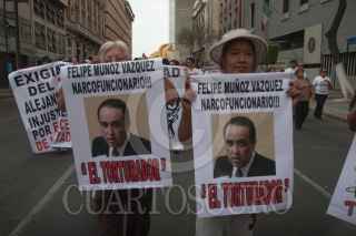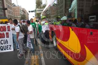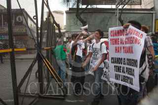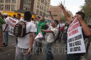 MÉXICO, D.F., 27FEBRERO2013.-Alumnos de bachilleratos provenientes de Aguascalientes marcharon del Monumento a la Revolución a la Secretaría de Gobernación para exigir la destitución de Felipe Muñoz Vázquez, Procurador de Aguascalientes. FOTO: JUAN PABLO ZAMORA /CUARTOSCURO.COM