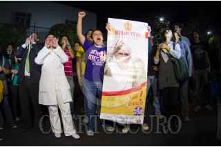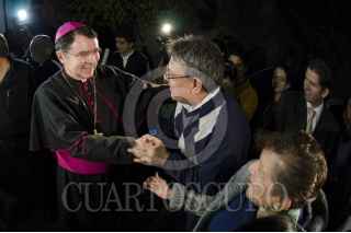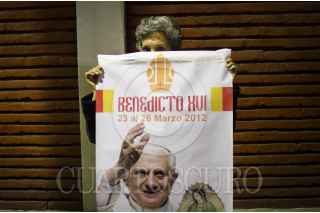 MÉXICO, D.F., 28FEBRERO2013.- El nuncio apostólico Christophe Pierre, recibió en la sede de la Nunciatura Apostólica de México a integrantes de la organización "10 x México", quienes se manifestaron mediante una despedida al Papa Benedicto XVI por su renuncia al pontificado que termina el día de hoy a las 13:00 (hora del Centro de México). FOTO: MISAEL VALTIERRA /CUARTOSCURO.COM