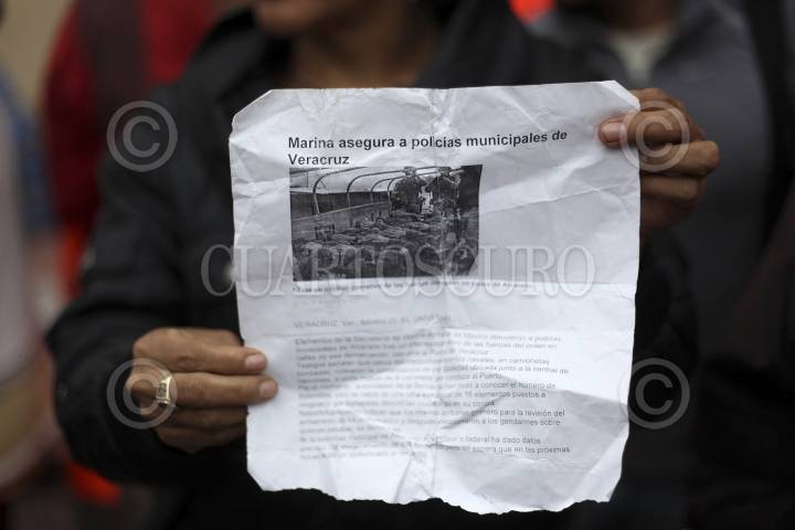 ALVARADO, VERACRUZ., 01MARZO2013.- Familiares y amigos de los 16 policías municipales de Alvarado, presuntamente ligados a la delincuencia organizada y detenidos por fuerzas federales el pasado 25 de Febrero, realizaron una protesta para exigir información de los uniformados, los cuales se encuentran desaparecidos para sus seres queridos ya que ninguna autoridad les ha proporcionado datos de la situación legal ni el paradero de los gendarmes. FOTO: FÉLIX MÁRQUEZ /CUARTOSCURO.COM