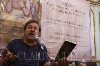 MÉXICO, D.F., 01MARZO2013.- Paco Ignacio Taibo II, presentó en la XXXIV Feria Internacional del Libro del Palacio de Minería; su último libro "Novela negra, de la ficción a la nota roja". FOTO: ADOLFO VALTIERRA /CUARTOSCURO.COM