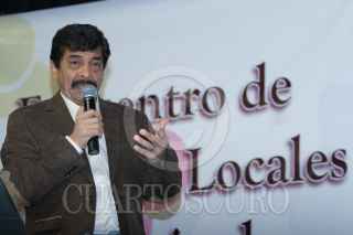 MÉXICO, D.F., 02MARZO2013.- El alcalde de Teloloapan Guerrero, Ignacio Valladares y Alejandro Encinas, dialógan antes de participar en el panel "La Reforma integral del DF por su Soberania" en el marco del Encuentro Nacional de Gobiernos Locales de Izquierda que llega hoy a su fin. FOTO: FRANCISCO RODRÍGUEZ /CUARTOSCURO.COM