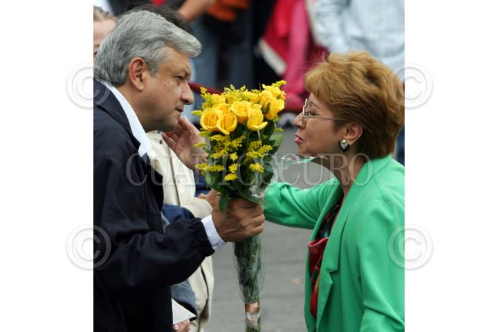 MEXICO, DF 24JULIO2005.- La directora del Conaculta Sari Bermudez y el jefe de gobierno Andrés Manuel López Obrador durante la inaguración de las Campanas que podran ser observadas a lo largo del Paseo de la Reforma. FOTO: Miguel Dimayuga/CUARTOSCURO.COM