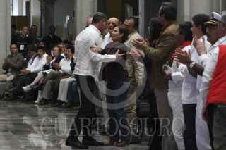 OAXACA, OAXACA, 02MARZO2013.- Rosario Robles Berlanga, secretaria de Desarrollo Social (Sedesol) y Gabino Cué, gobernador del estado, firmaron el Acuerdo Integral para el Desarrollo Social Incluyente como parte de la Cruzada Nacional Contra el Hambre el cual se llevó a cabo en el Palacio de Gobierno y con el cual arranca dicho esquema en la entidad. FOTO: ARTURO PÉREZ ALFONSO /CUARTOSCURO.COM
