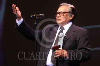 ZAPOPAN, JALISCO, 02MARZO2013.- Esta noche en el Auditorio Telmex de esta ciudad se llevo a cabo la inauguración la edición numero 28 del Festival Internacional de Cine en Guadalajara (FICG), en donde el primer actor Ernesto Gómez Cruz recibió de manos de Raúl Padilla López, Presidente del Patronato del (FICG), el reconocimiento Mayahuel de Plata. FOTO: FERNANDO CARRANZA GARCÍA /CUARTOSCURO.COM