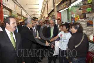 MÉXICO, D.F., 05MARZO2013.- Miguel Ángel Mancera, Jefe de Gobierno, saluda a comerciantes de la Central de Abastos, el mandatario visitó este mercado en el marco de la firma del convenio entre la Central de Abastos y la Secretaría de Agicultura. FOTO: CUARTOSCURO.COM