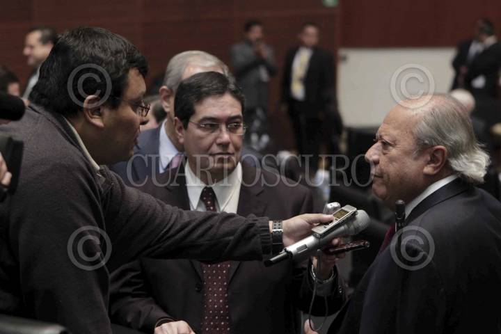 MÉXICO, D.F., 05MARZO2013.- Los senadores priistas Gerardo Sánchez García y Carlos Romero Deschamps, sonríen a la cámara durante en la sesión de la Cámara Alta. FOTO: CUARTOSCURO.COM