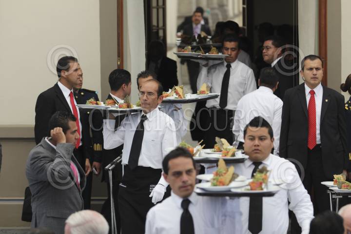 MÉXICO, D.F., 05MARZO2013.- Meseros sirven el banquete durante la bienvenida del Primer Ministro de Nueva Zelandia, John Key y su esposa Bronagh Key, en el alcazar del Castillo de Chapultepec. FOTO: SAÚL LÓPEZ /CUARTOSCURO.COM