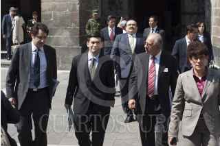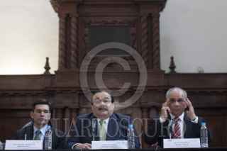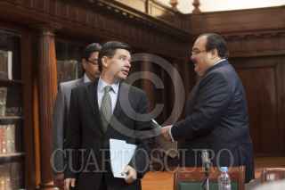 MÉXICO, D.F., 06MARZO2013.- Fernando Aportela Rodríguez, subsecretario de Hacienda y Crédito Público, y Jorge Carlos Ramírez Marín, secretario de Desarrollo Agrario Territorial y Urbano, presentaron el Programa de Garantía SHF a la Construcción de Vivienda, como la primera medida de una estrategia integral de políticas públicas del Gobierno Federal, en materia de vivienda, bajo la coordinación institucional de la Secretaría de Desarrollo Agrario, Territorial y Urbano (SEDATU). El producto se ofrecerá a través de la banca comercial e intermediarios financieros regulados, siguiendo sus mejores prácticas de otorgamiento y evaluación de riesgos. FOTO: MOISÉS PABLO /CUARTOSCURO.COM