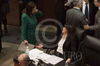 MÉXICO, D.F., 07MARZO2013.- La priista Cristina Díaz Salazar y Mónica Arreola Gordillo, senadora del PANAL, en sesión de la Cámara de Senadores. FOTO: MOISÉS PABLO /CUARTOSCURO.COM