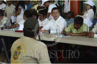 AYUTLA DE LOS LIBRES, GUERRERO, 07MARZO2013.- El titular de la Comisión Nacional de los Derechos Humanos, Dr. Raúl Plascencia Villanueva y el dirigente de la Unión de Pueblos y Organizaciones del Estado de Guerrero, Bruno Plácido, se reunieron la tarde de hoy en este poblado donde pidieron la intervención de este organismo ante las omisiones para atender el llamado de auxilio por la inseguridad que se vive ante los delitos de secuestro y extorsión. La CNDH manifestó que las autoridades deben de emprender acciones urgentes de prevención y profesionalización de los cuerpos policíacos. En la imagen habitantes del pueblo de Ahuacachague, mantienen retenes para inhibir los delitos. FOTO: BERNANDINO HERNÁNDEZ /CUARTOSCURO.COM