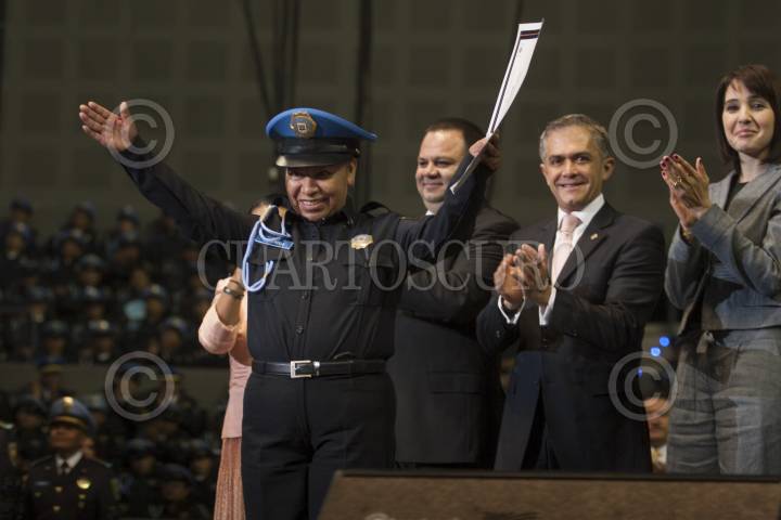 MÉXICO, D.F., 08MARZO2013.- Familiares del policia caido en cumplimiento de su deber, Enrique Jimenez Monroy, recibieron de manos del Jefe de Gobierno, Miguel Angel Mancera y del Secretario de Seguridad Pública, Jesús Rodríguez Almeida un reconocimiento Post Mortem. Esto en el marco de la celebración del Día Internacional de la Mujer. FOTO: FRANCISCO RODRÍGUEZ /CUARTOSCURO.COM