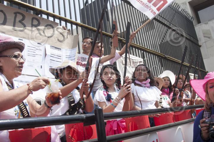 MÉXICO, D.F., 08MARZO2013.- El presidente nacional del Movimiento de Regeneración Nacional MORENA, ofreció un discurso a las puertas del Servicio de Administración Tributaria, para protestar por el intento del PRI de cargar de IVA a los alimentos y medicinas, acompañadas por las "Adelitas" Clara acuso al PRI de violar sus estatutos y querer "exrpimir al pueblo" posterior se realizó una clausura simbólica. FOTO: FRANCISCO RODRÍGUEZ /CUARTOSCURO.COM